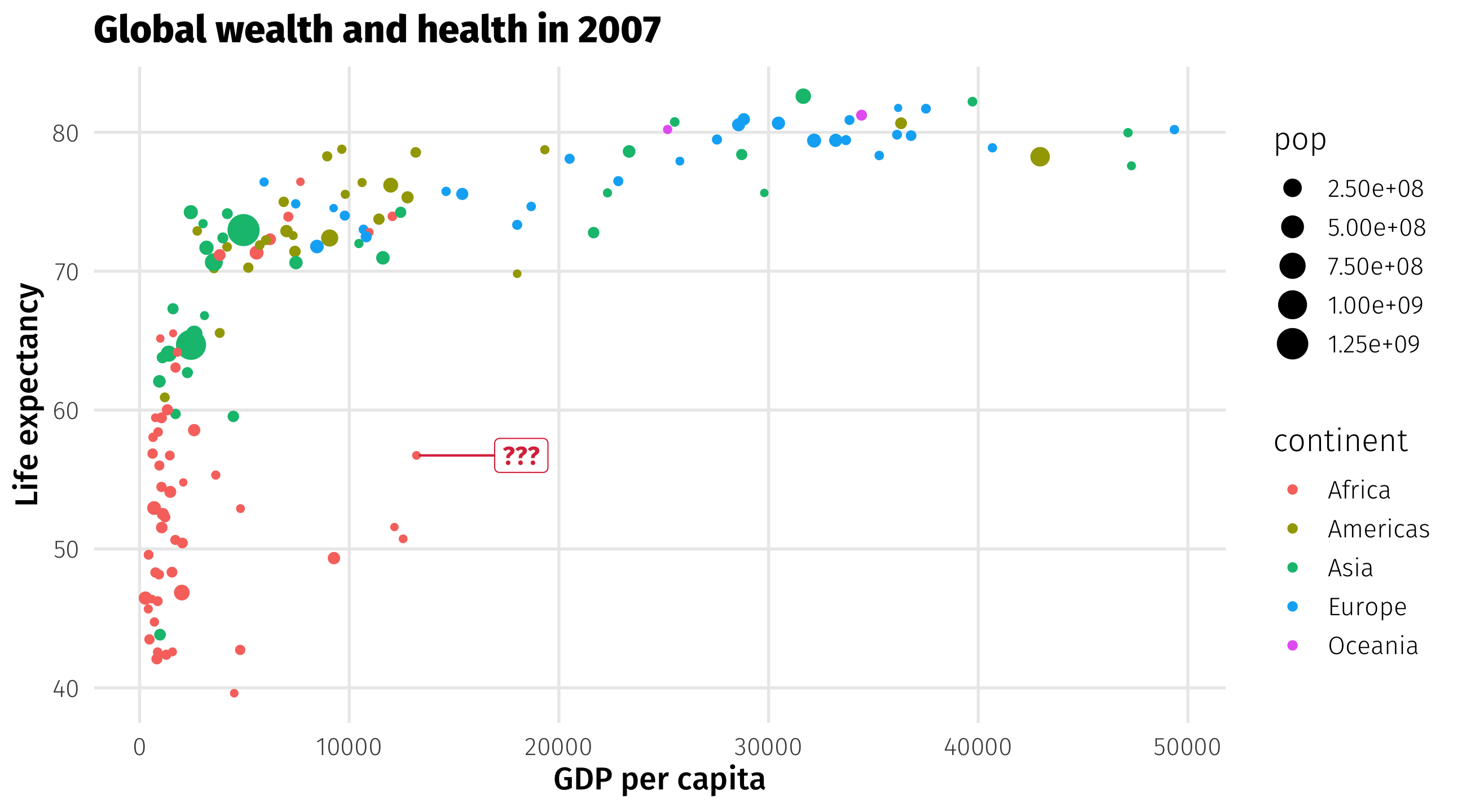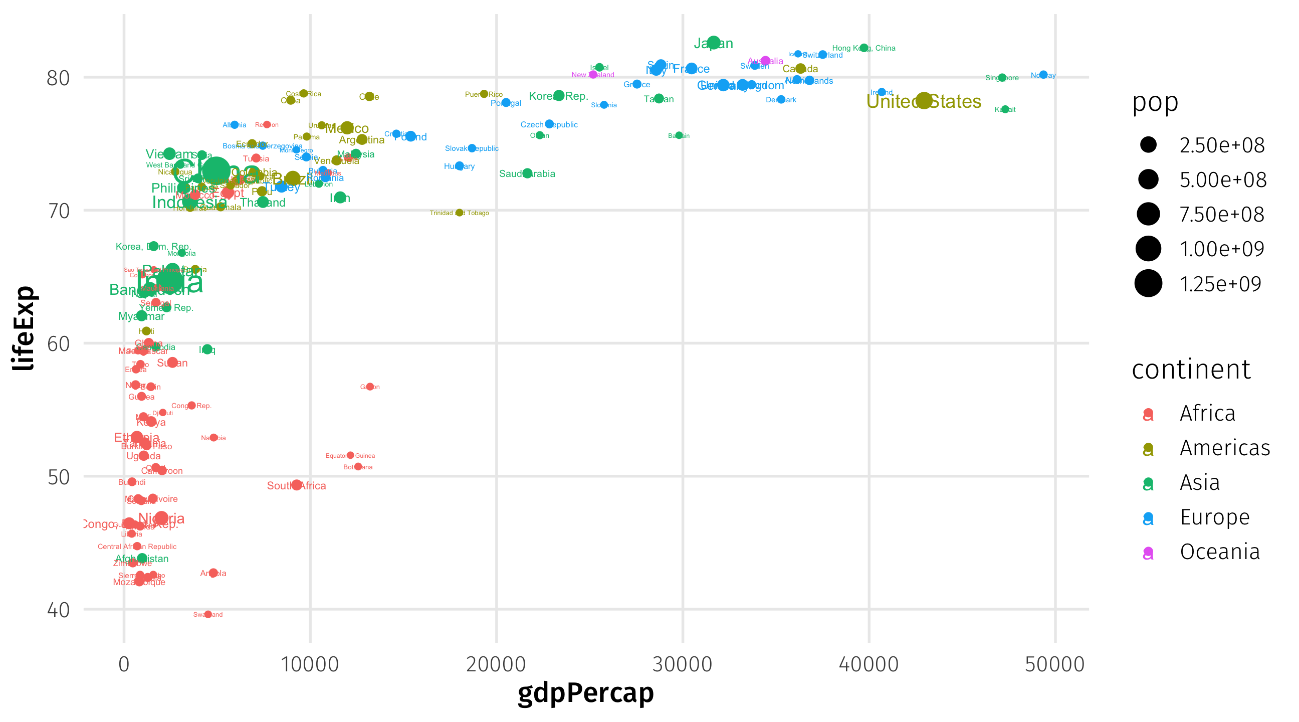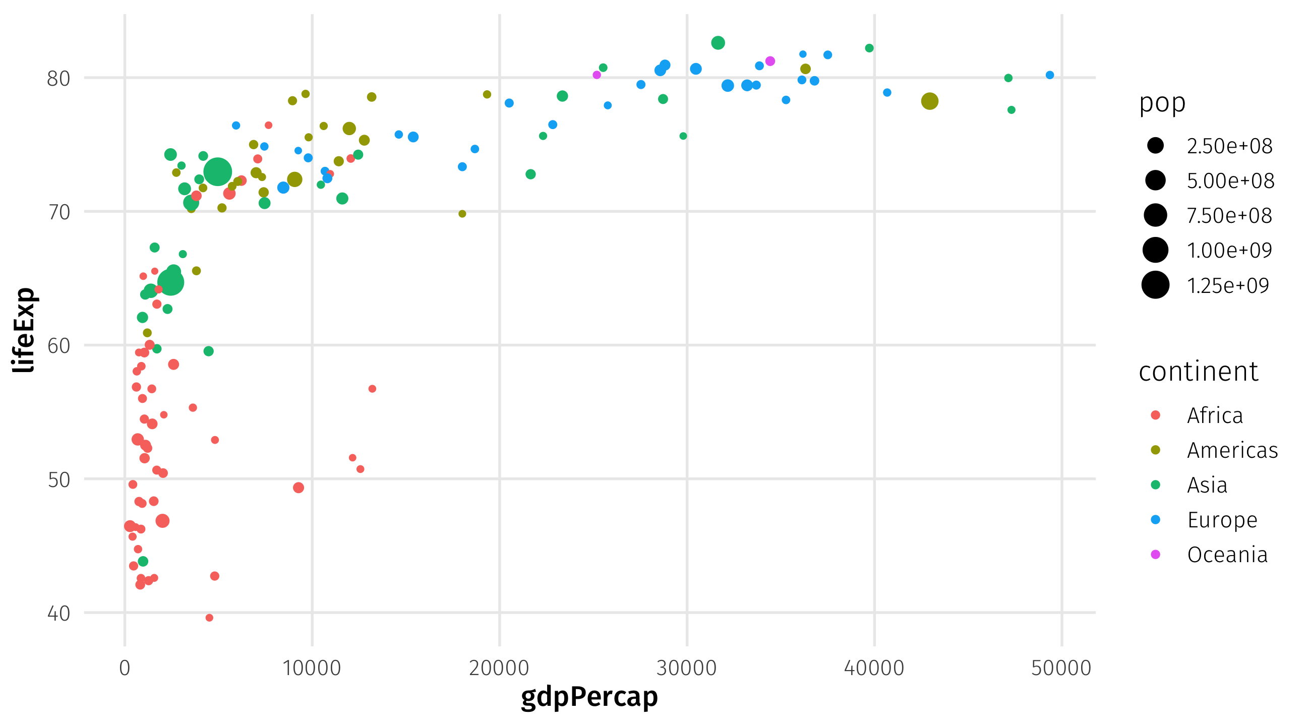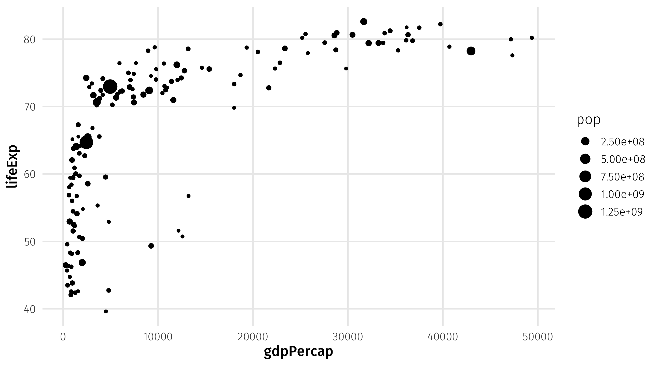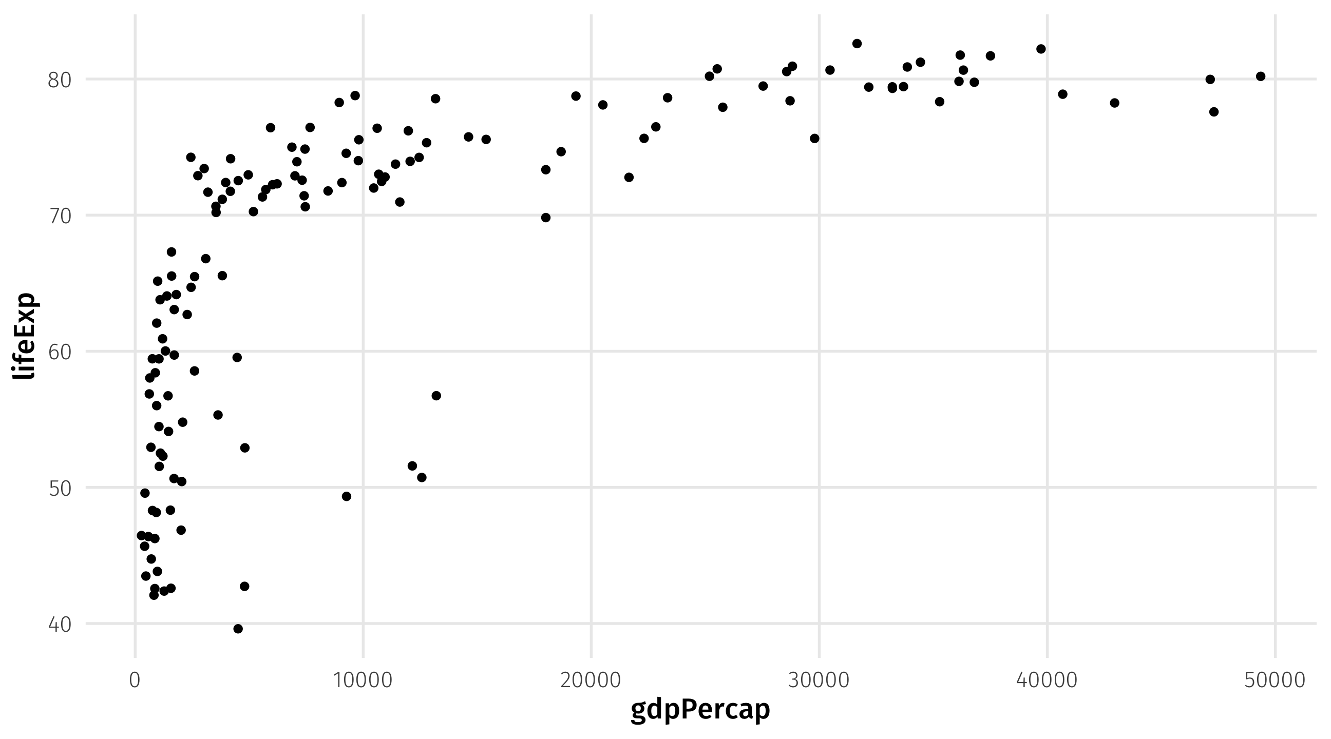 | lifeExp | y | geom_point() |