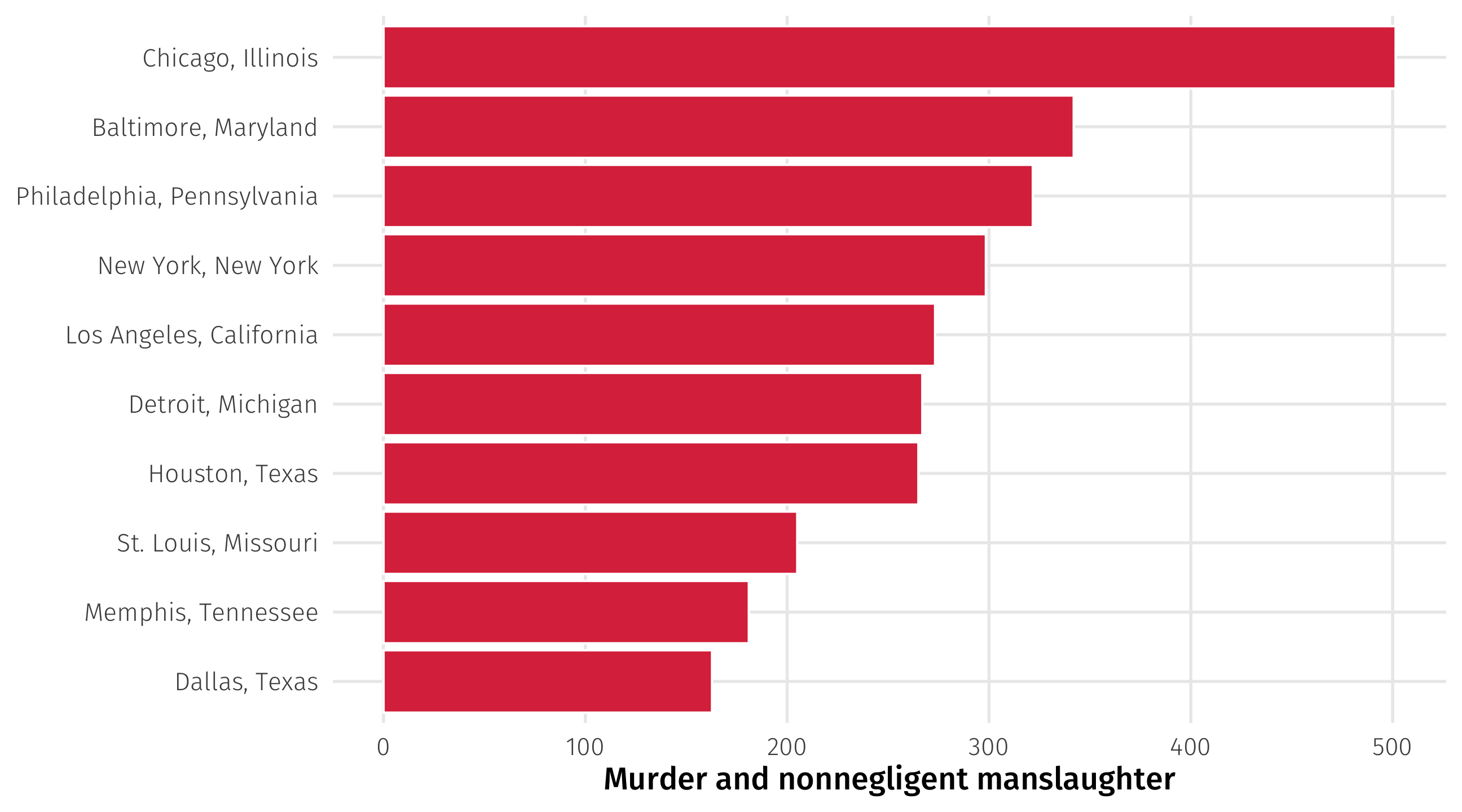 We want to know how many murders have taken place (or drug overdoses, or crimes, or COVID cases, or…) per person in the city (per capita)