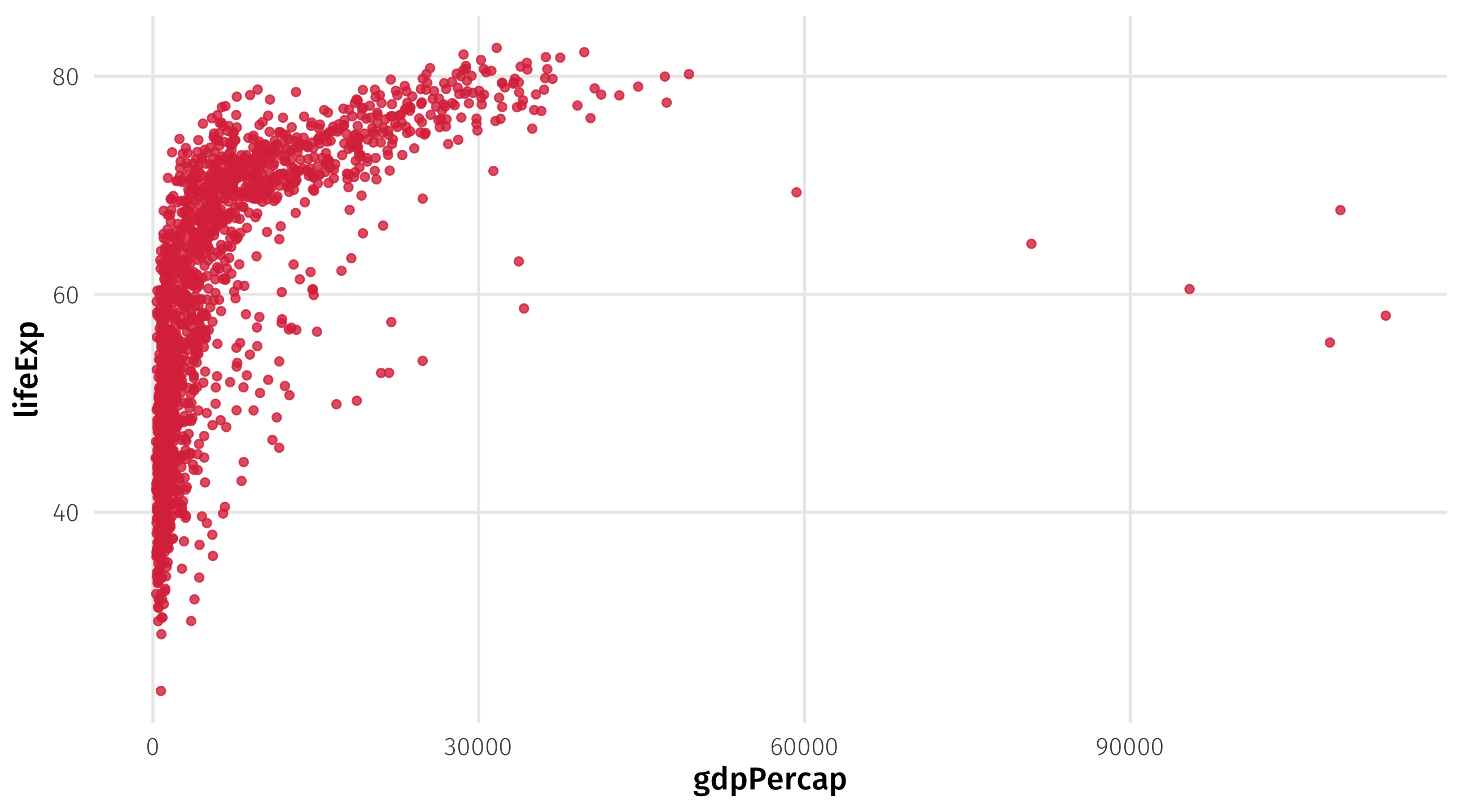 Notice the units: life expectancy in years, GDP in dollars per capita