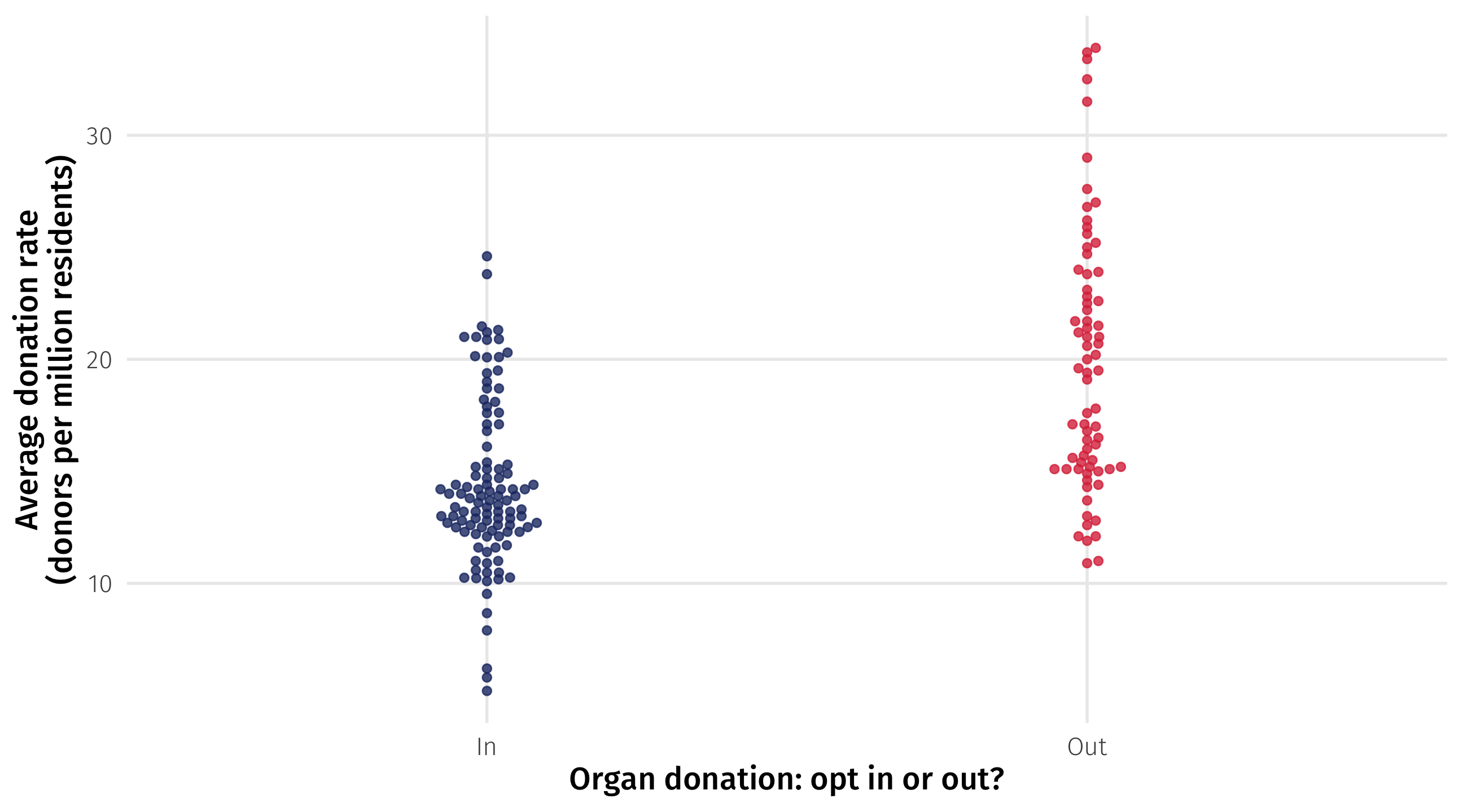 Country-years where people have to OPT IN to organ donation have, on average, 14.31 donations per million residents