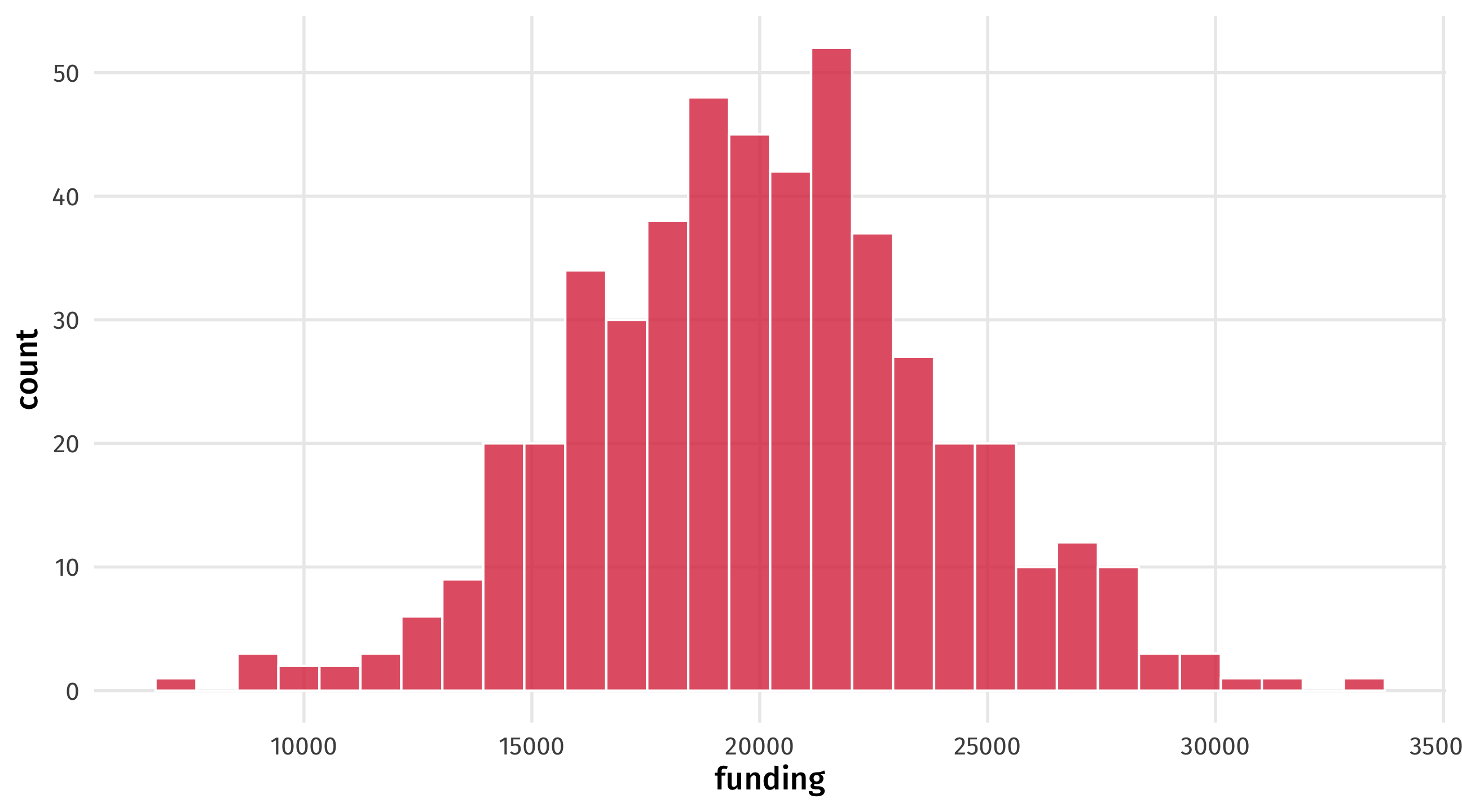 funding = rnorm(n = 500, mean = 20000, sd = 4000))