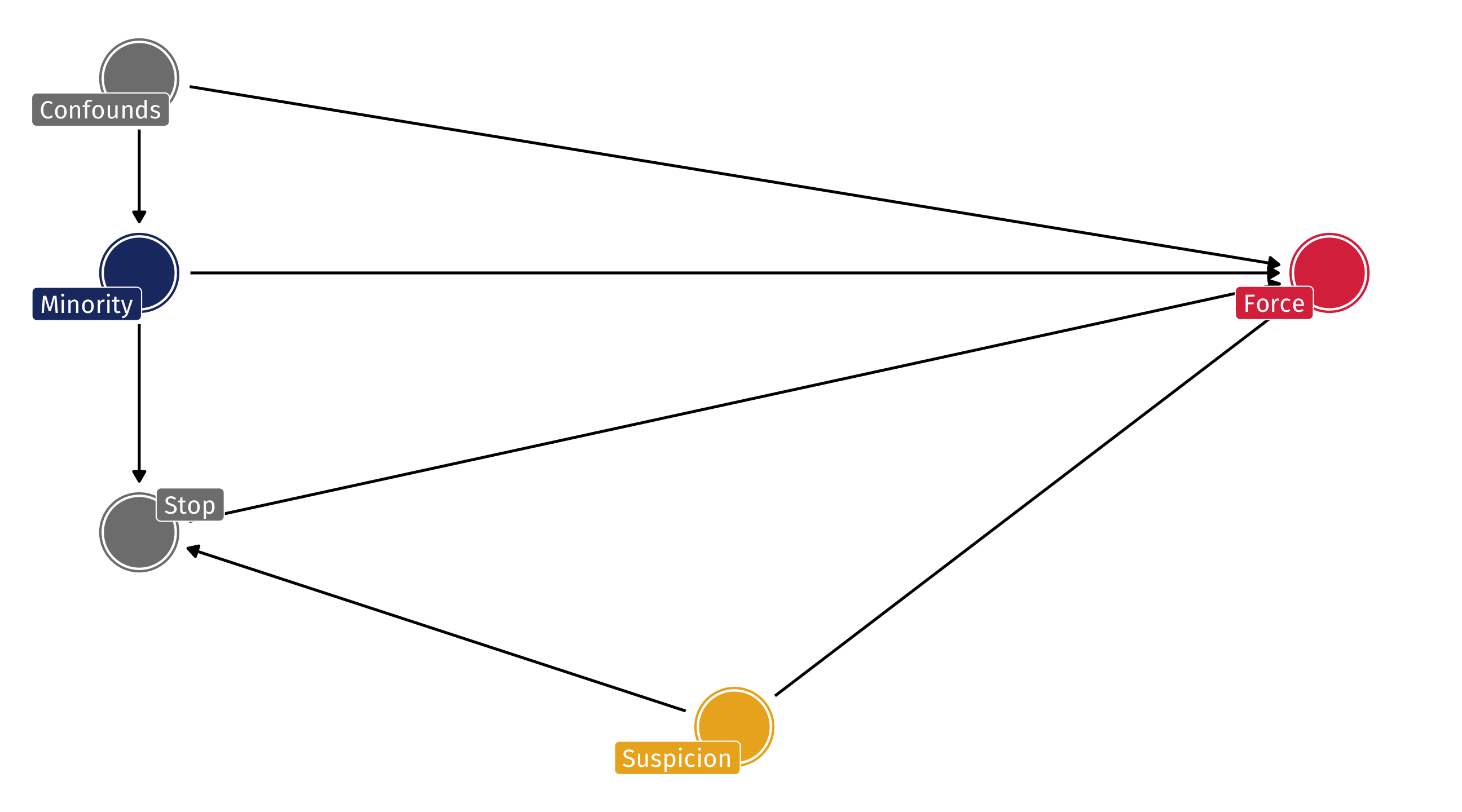 But what if police are more likely to stop people they believe are “suspicious” AND use force against people they find “suspicious”? THEN conditioning on the stop is equivalent to conditioning on a collider
