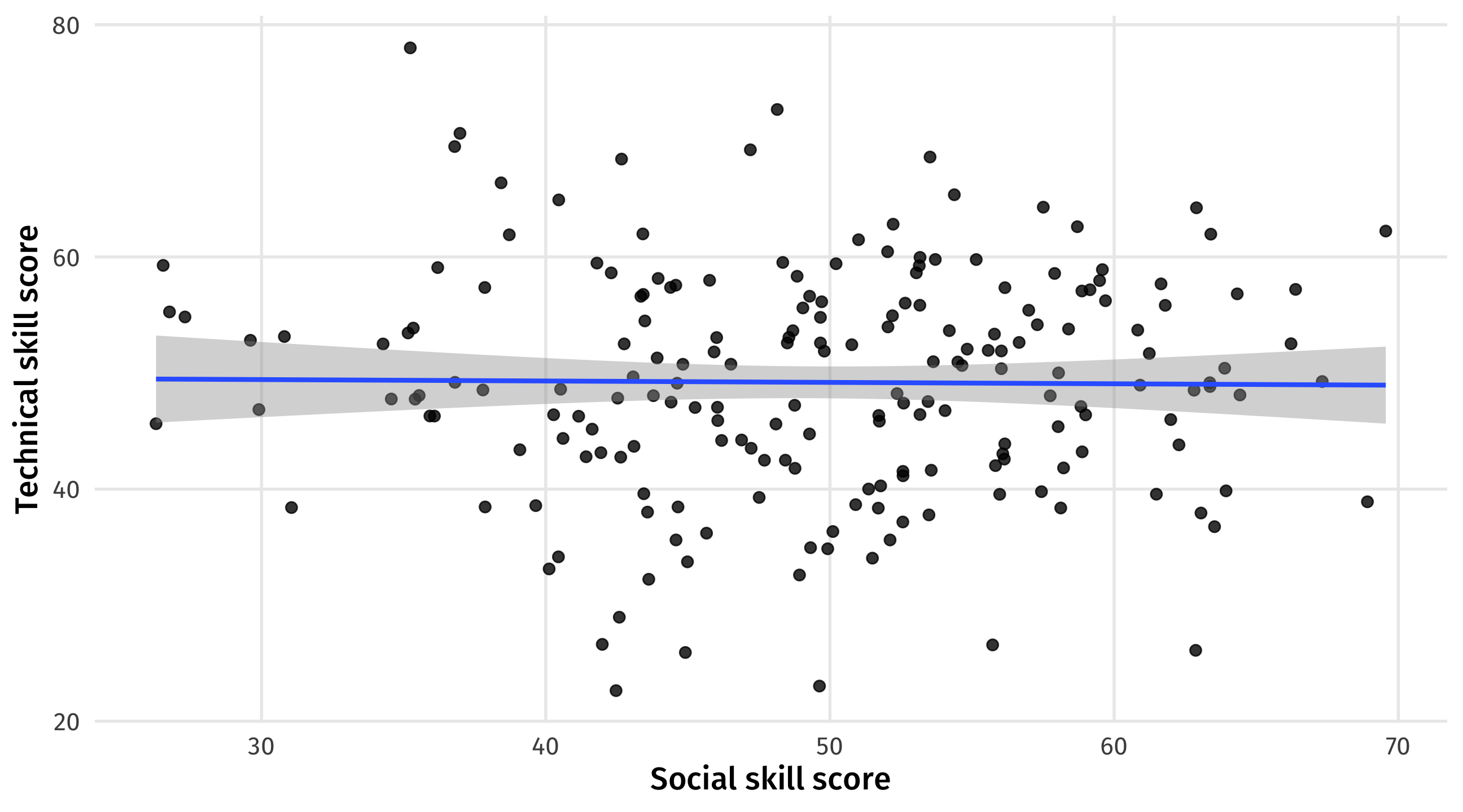 No relationship between social and technical skills among all job candidates