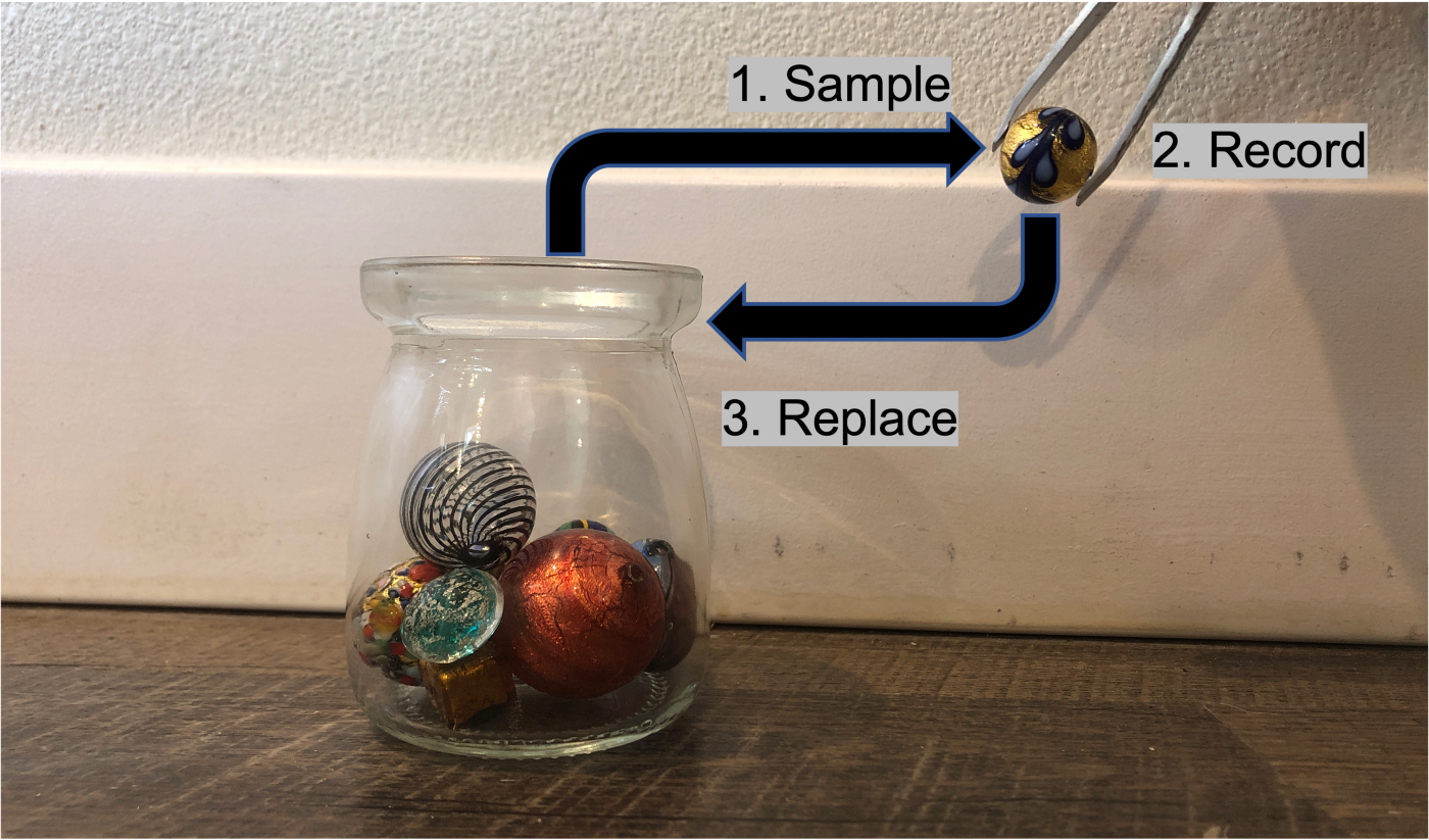 Solution: sample with replacement \(\rightarrow\) once we draw an observation it goes back into the dataset, ad can be sampled again