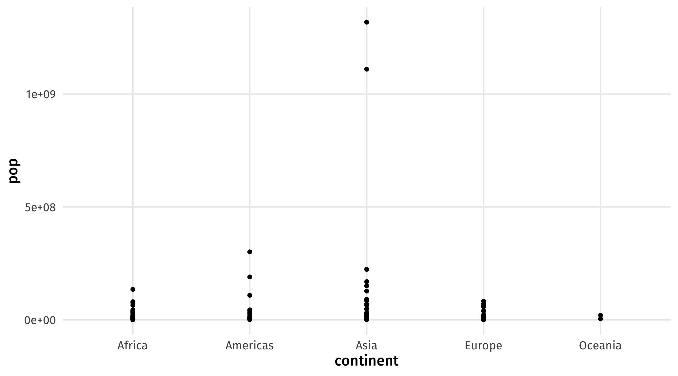 | Scatterplot | x = cause, y = effect | point() | Relationships |