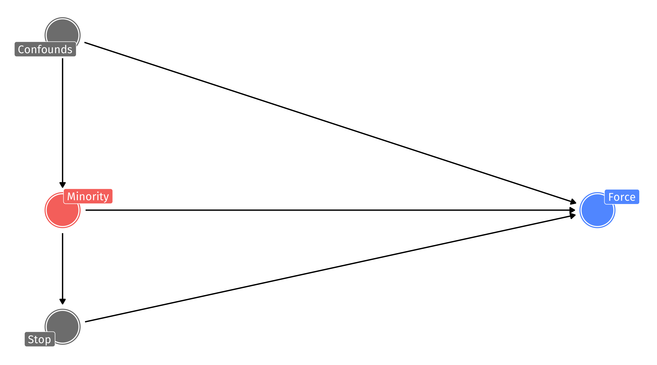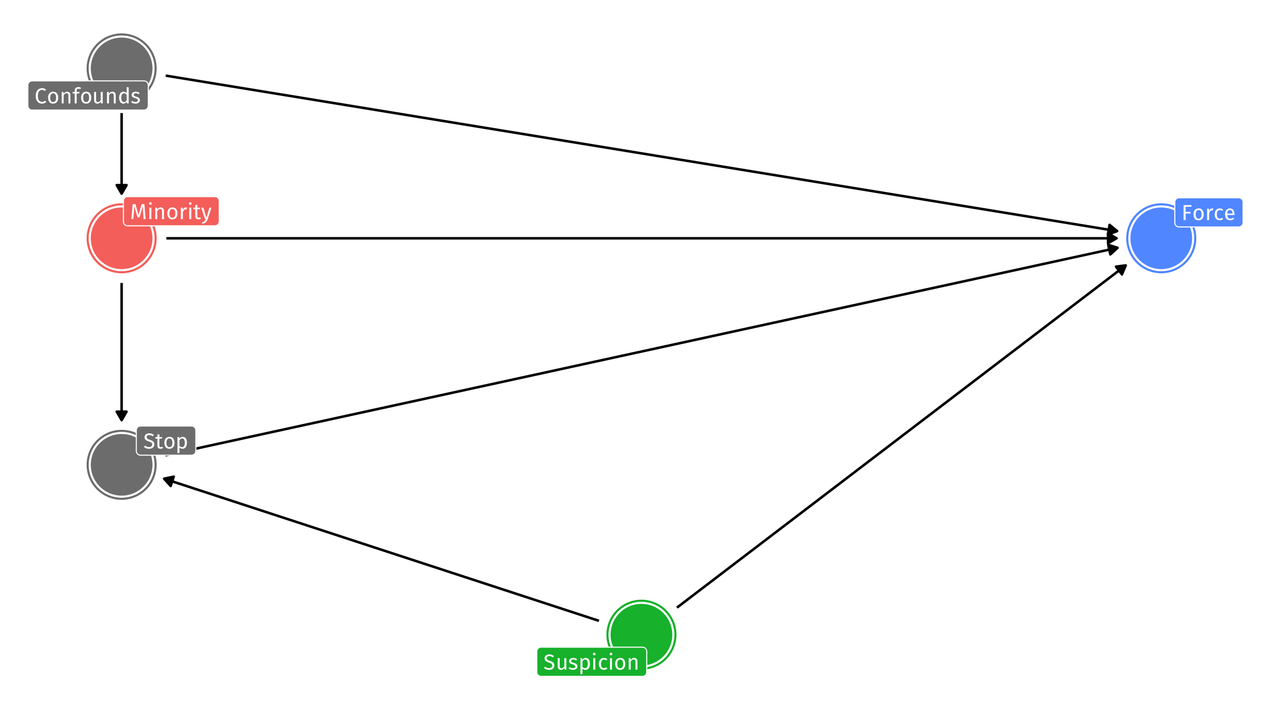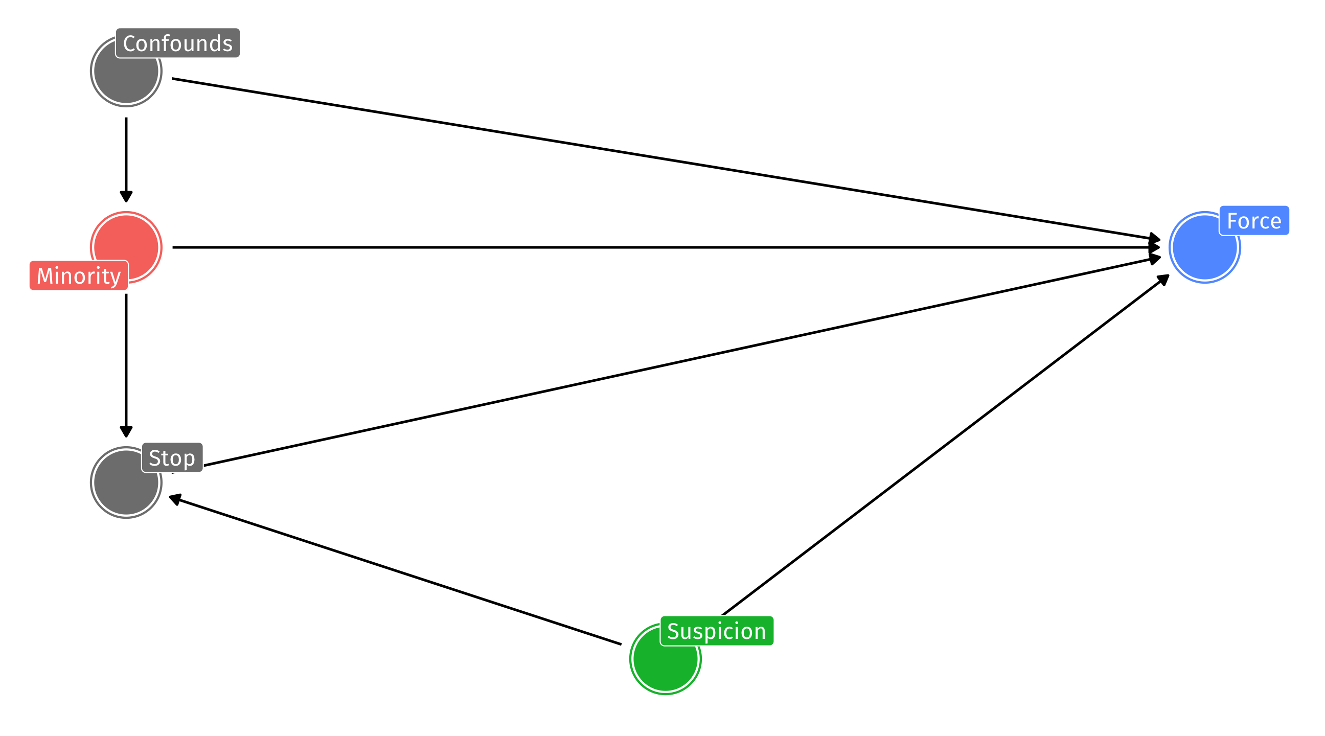 But what if police are more likely to stop people they believe are “suspicious” AND use force against people they find “suspicious”? THEN conditioning on the stop is equivalent to conditioning on a collider